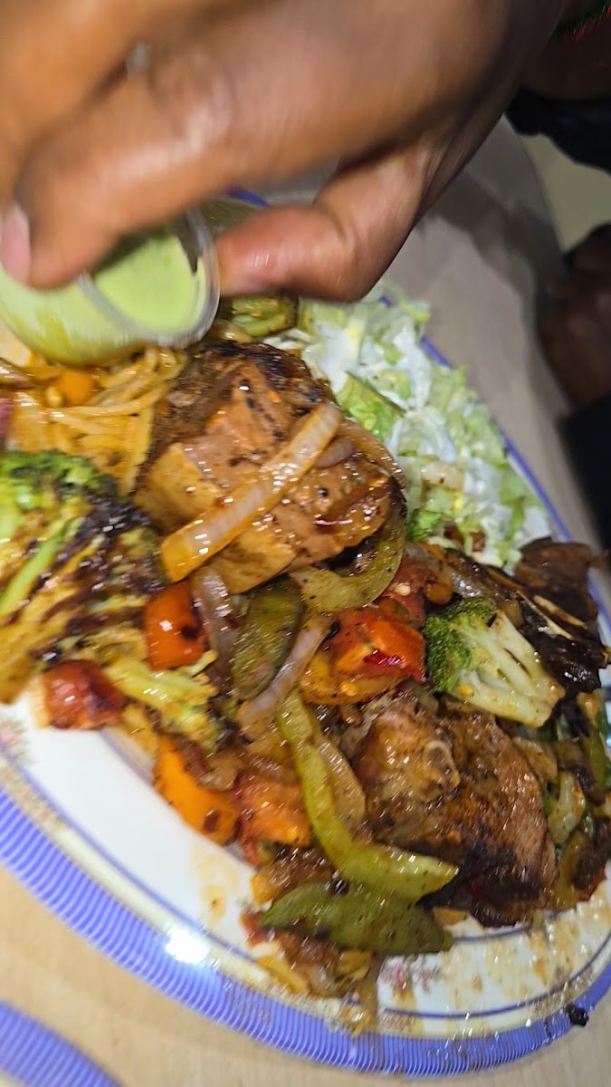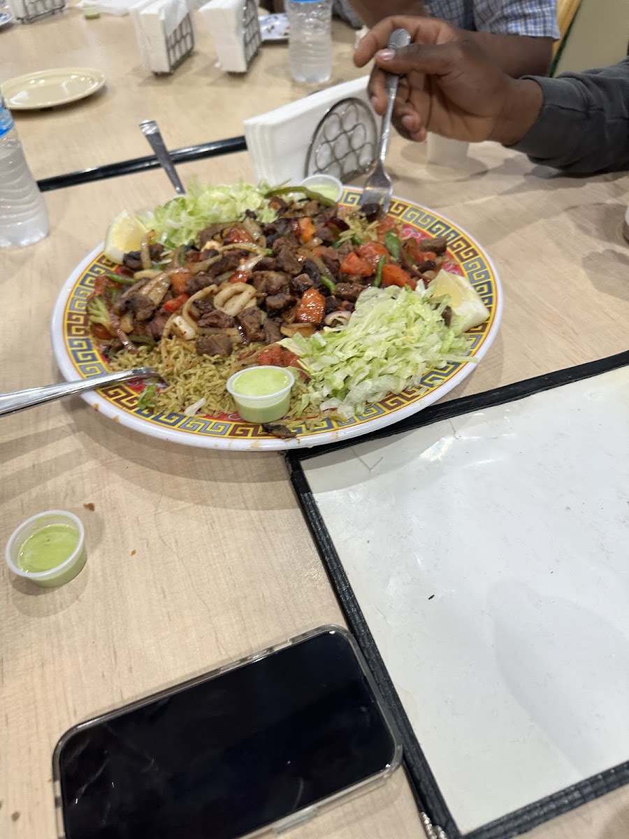 This was my first time having Somali food and now I can't wait to have more! I came here off of a recommendation from one of my Somali friends; she said the food was very tasty and authentic. I absolutely loved everything that I tried. We started with sambusas which were a stuffed with a richly spiced meat mixture. We opted for the sports plate so we could try more. We did half rice and half spaghetti with chicken and beef suqaar on top - wow!! I the meats were so moist and juicy, I absolutely loved the spaghetti. Also tried the tea they had available on the side - yummy! I will absolutely come back again soon and highly recommend!